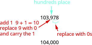 | So, 104,000 is 103,978 rounded to the nearest hundred. |
